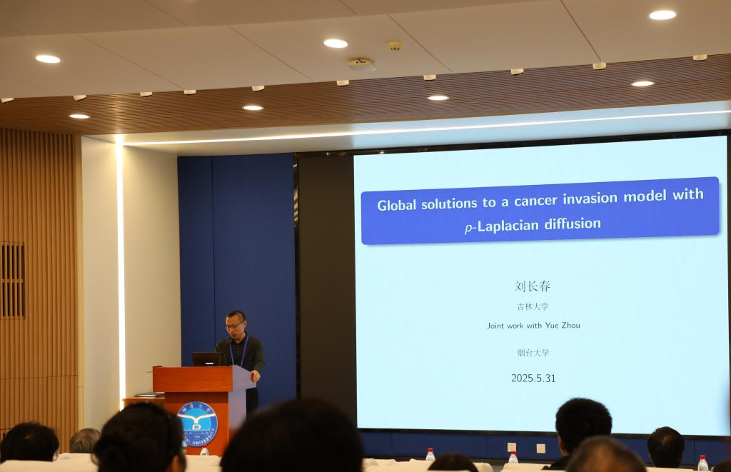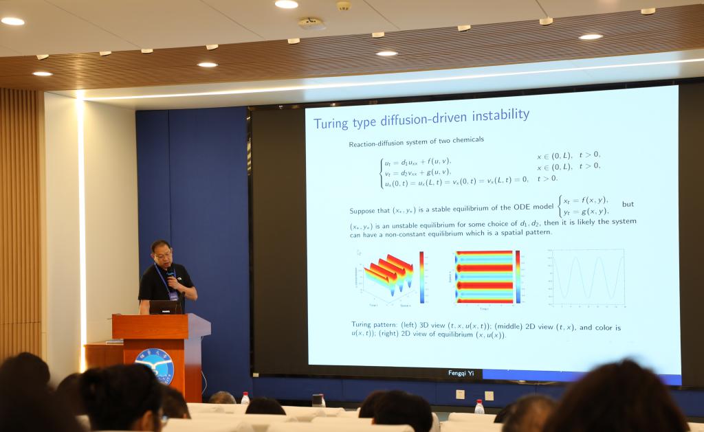 本次研讨会汇聚了来自北京大学、武汉大学、香港中文大学(深圳)、重庆大学、中国人民大学、哈尔滨工业大学、北京理工大学等国内顶尖高校及科研院所30余位专家学者。研讨会期间,北京理工大学王一夫教授、吉林大学刘长春教授、大连理工大学衣凤岐教授等15位专家围绕“三维双重退化营养趋化系统中任意结构的稳定性”(Stabilization of arbitrary structures in a three-dimensional doubly degenerate nutrient taxis system)“具有p-拉普拉斯扩散效应肿瘤侵袭模型解的整体存在性”(Global solutions to a cancer invasion model with p-Laplacian diffusion)“模拟CIMA化学反应的耦合双层Lengyel-Epstein反应-扩散系统的动力学性质”(The dynamics of the coupled reaction-diffusion Lengyel-Epstein system with two layers modeling CIMA chemical reactions)等内容带来精彩报告。与会专家学者还围绕偏微分方程及其相关领域应用的前沿热点问题、新型研究方法和定性理论分析等方面进行深入探讨交流,共同分享研究成果。