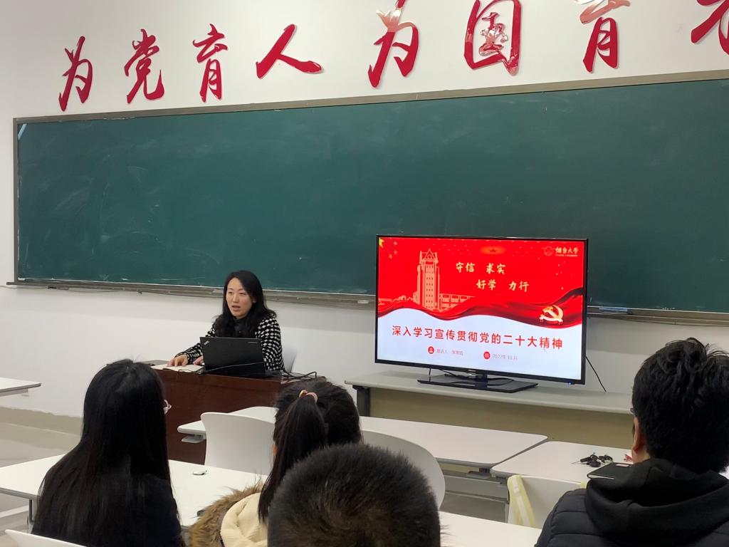 党总支书记张寅晗面向学院党员宣讲党的二十大精神。