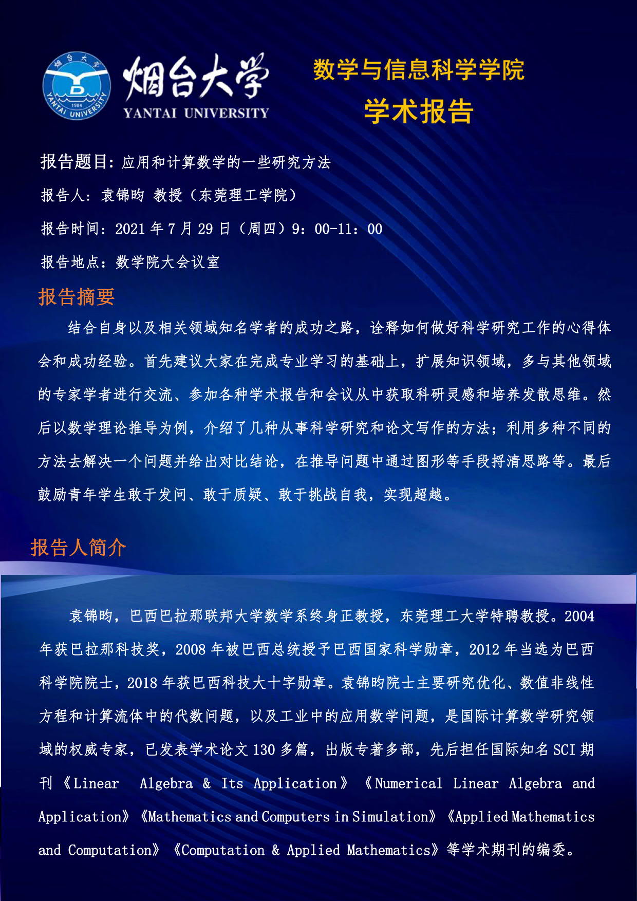 学术报告- 袁锦昀 教授(东莞理工学院)