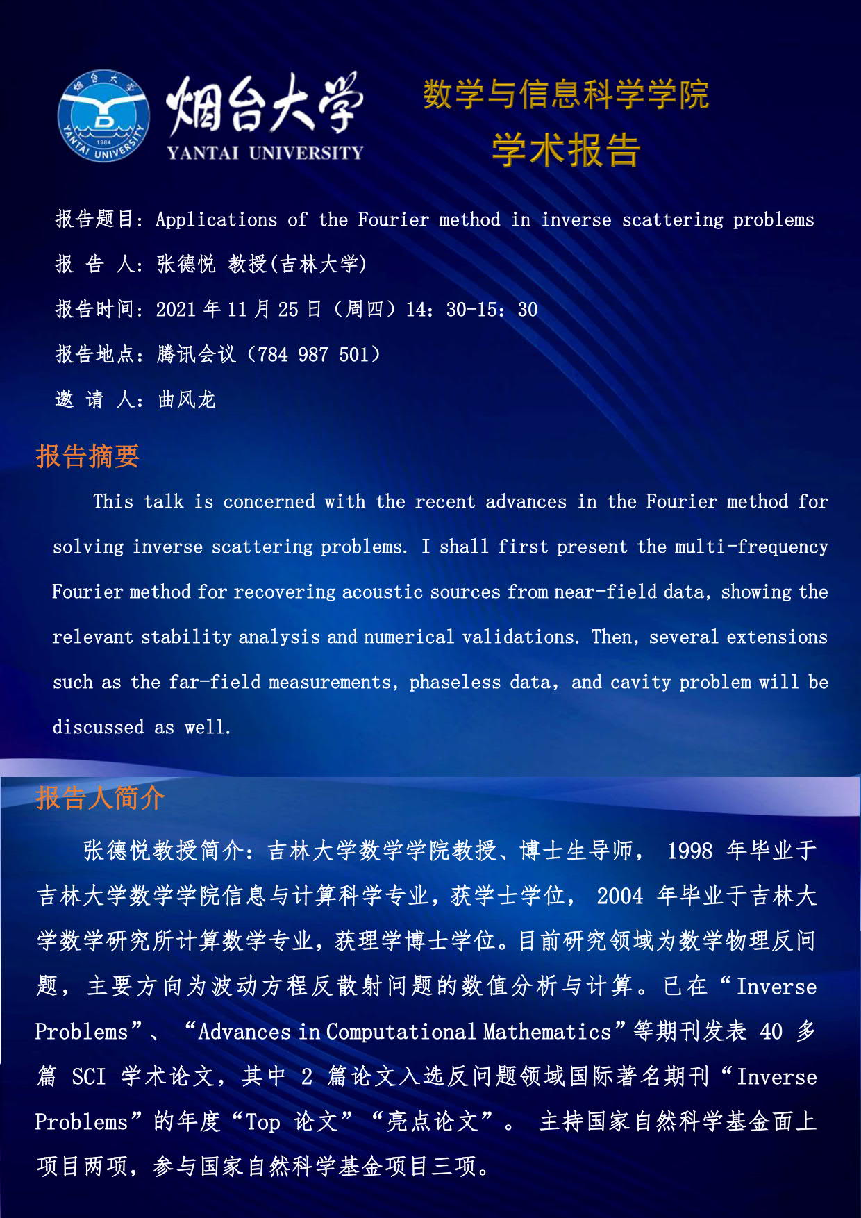 学术报告-张德悦 教授(吉林大学)