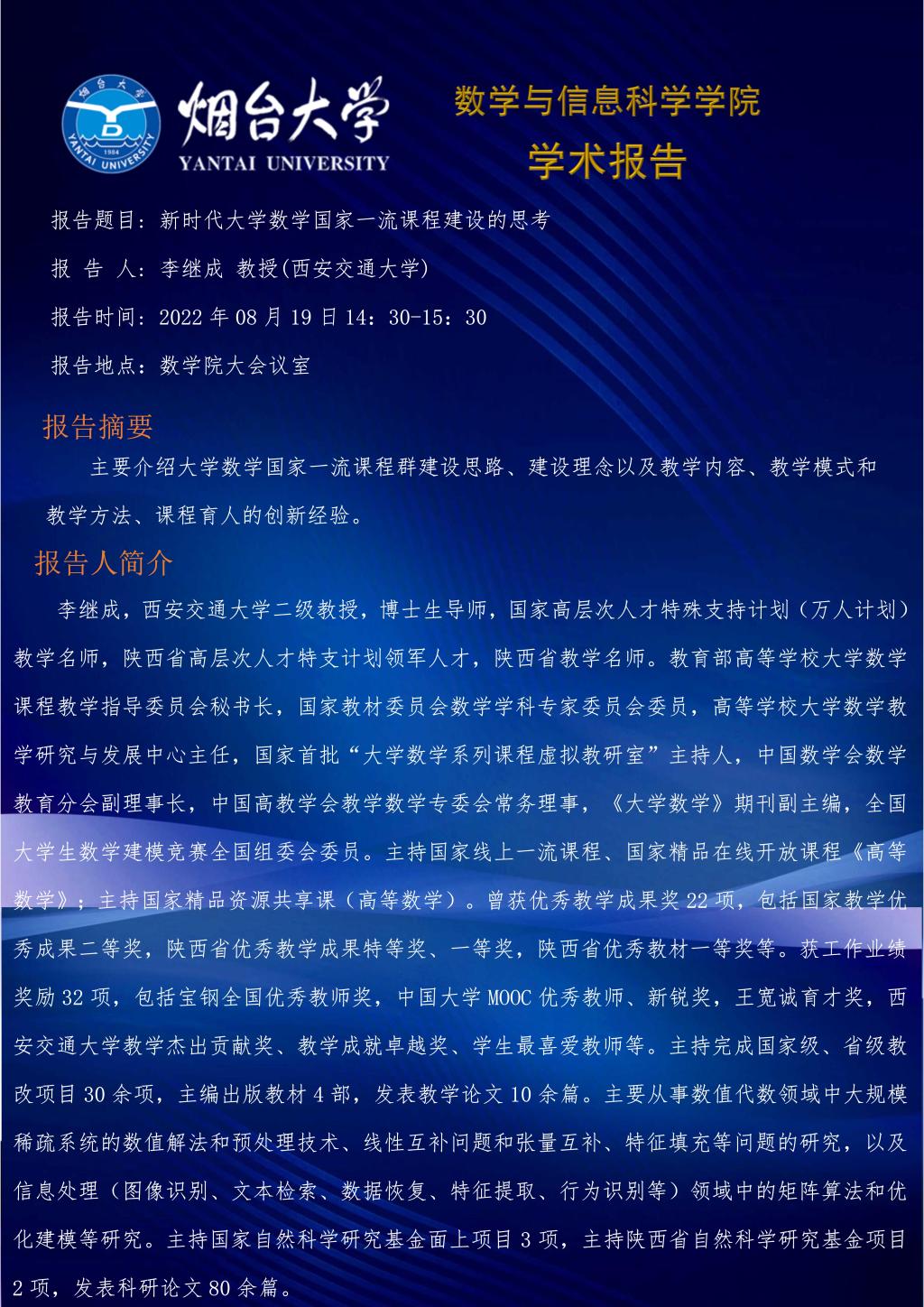 学术报告-李继成 教授(西安交通大学)