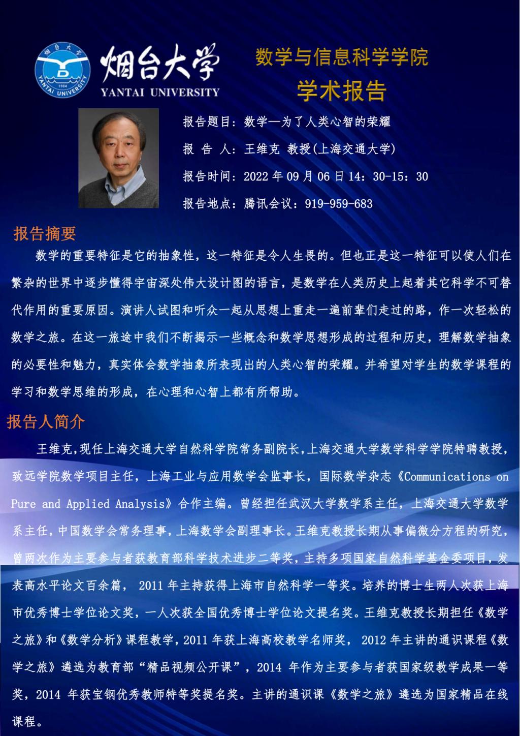 学术报告-王维克 教授(上海交通大学)