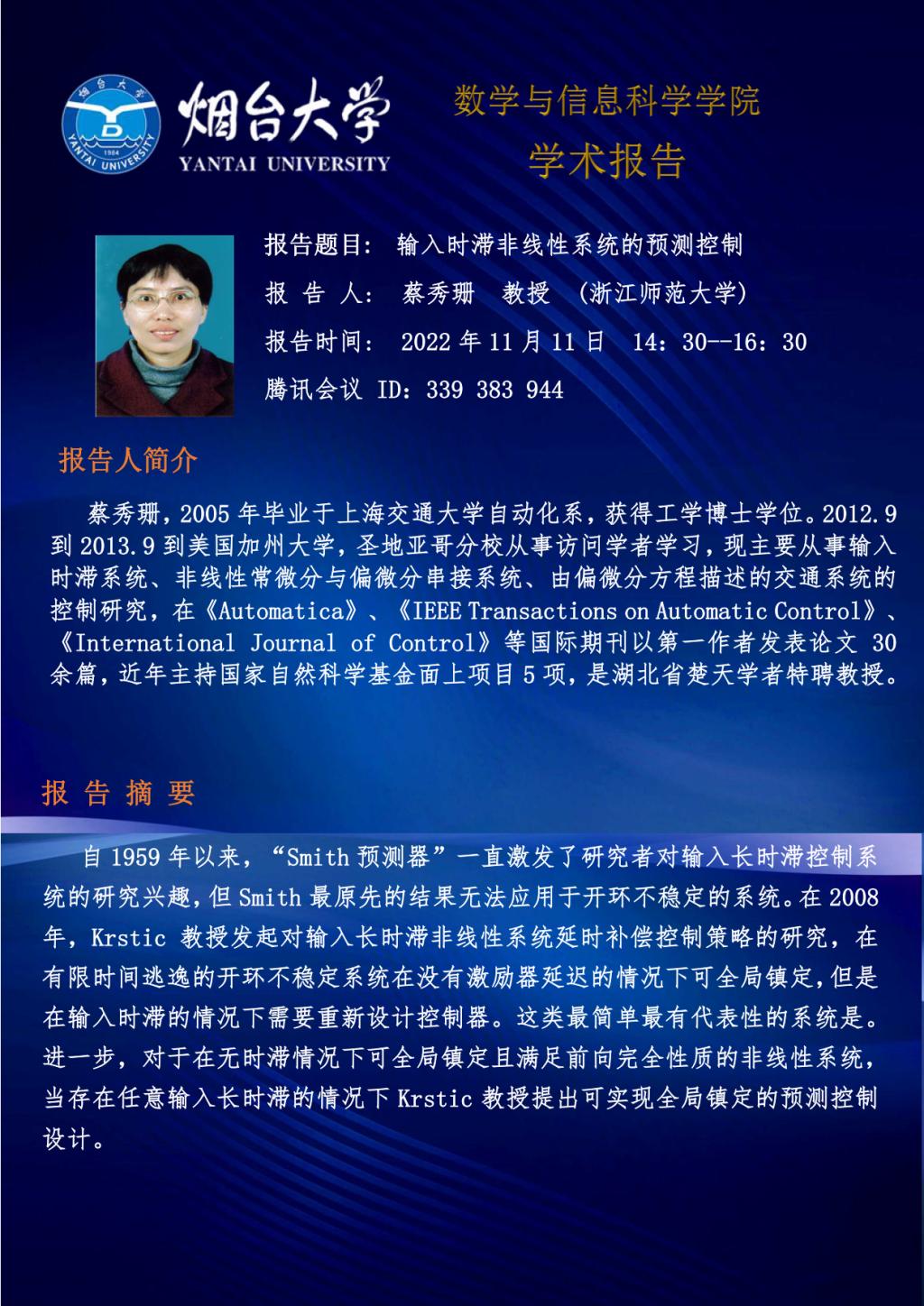 学术报告--蔡秀珊 教授(浙江师范大学)