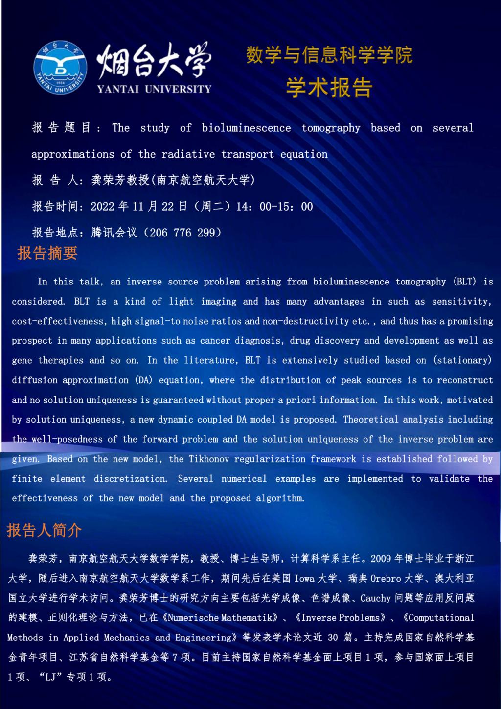 学术报告--龚荣芳 教授(南京航空航天大学)