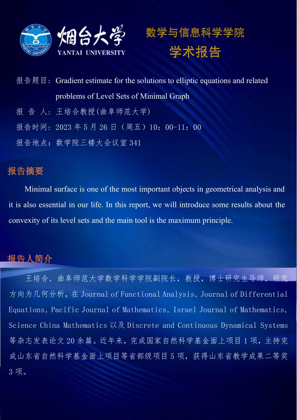 学术报告--王培合 教授(曲阜师范大学)