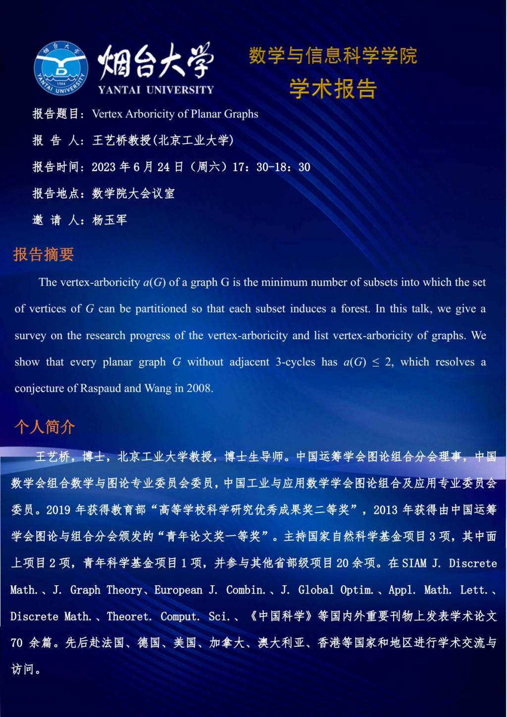 学术报告--王艺桥 教授(北京工业大学)