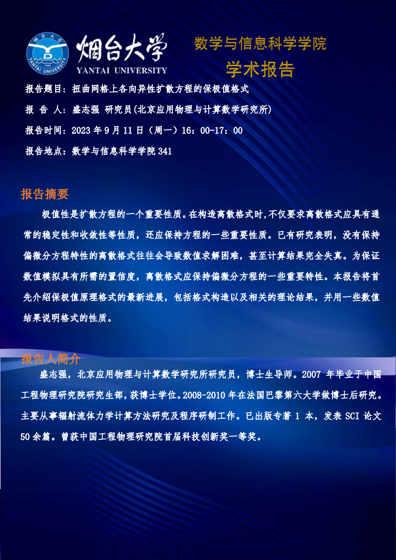 学术报告--盛志强 研究员(北京应用物理与计算数学研究所)