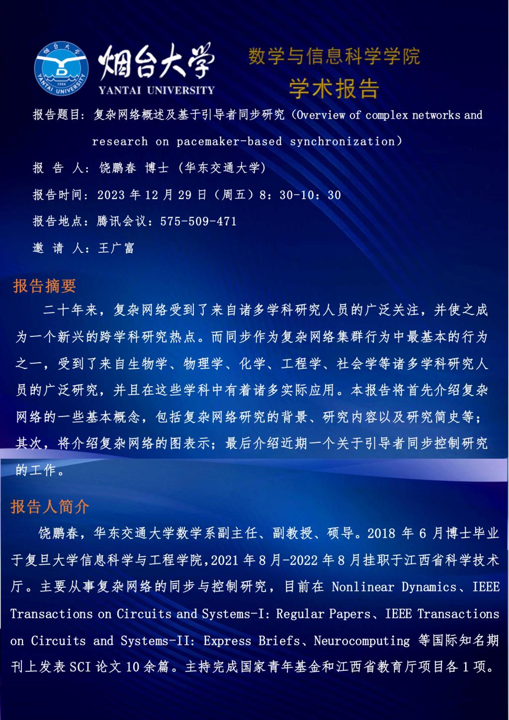 学术报告--杨怀君 副教授(郑州航空工业管理学院)