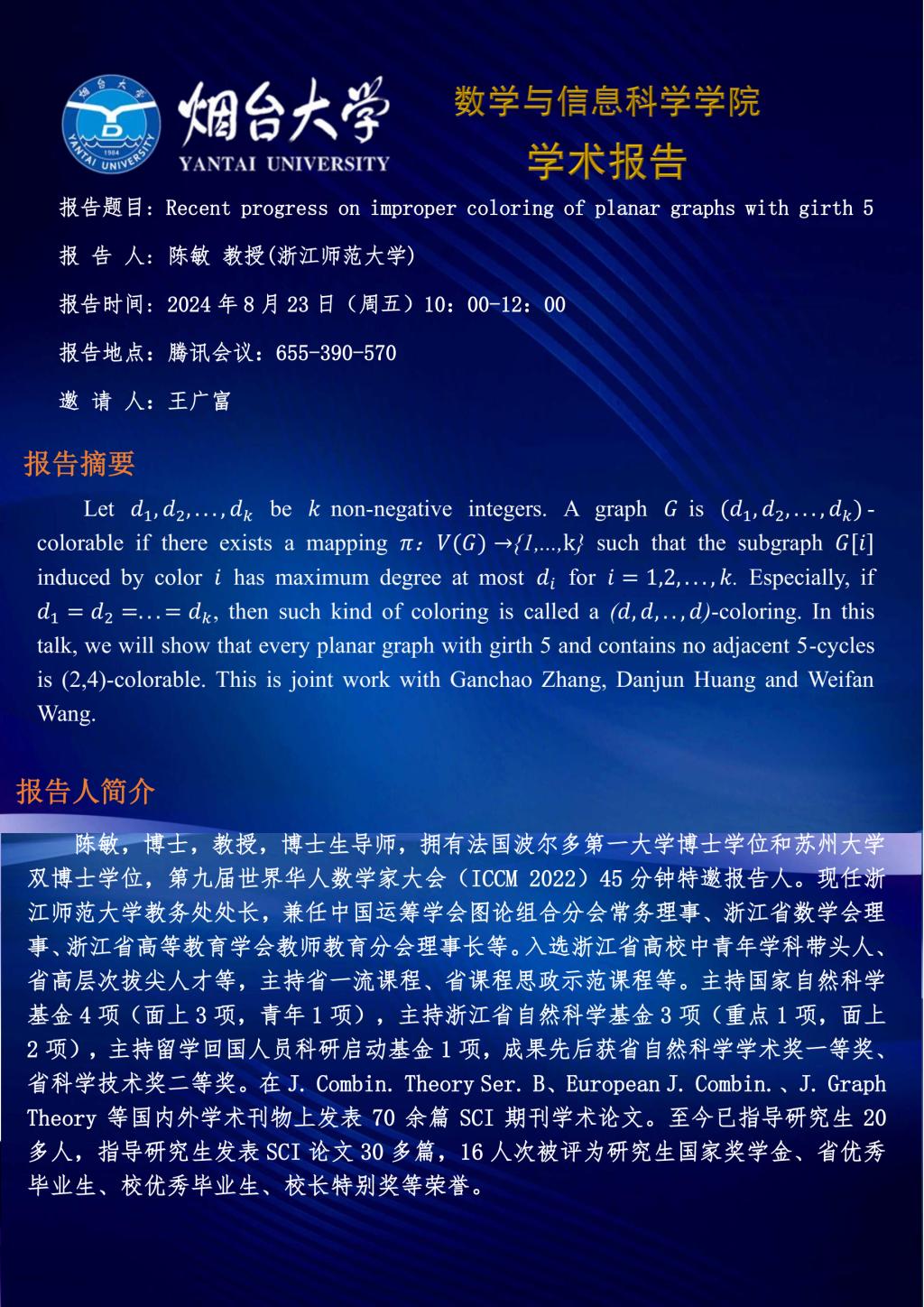 学术报告--陈敏 教授(浙江师范大学)—20240823