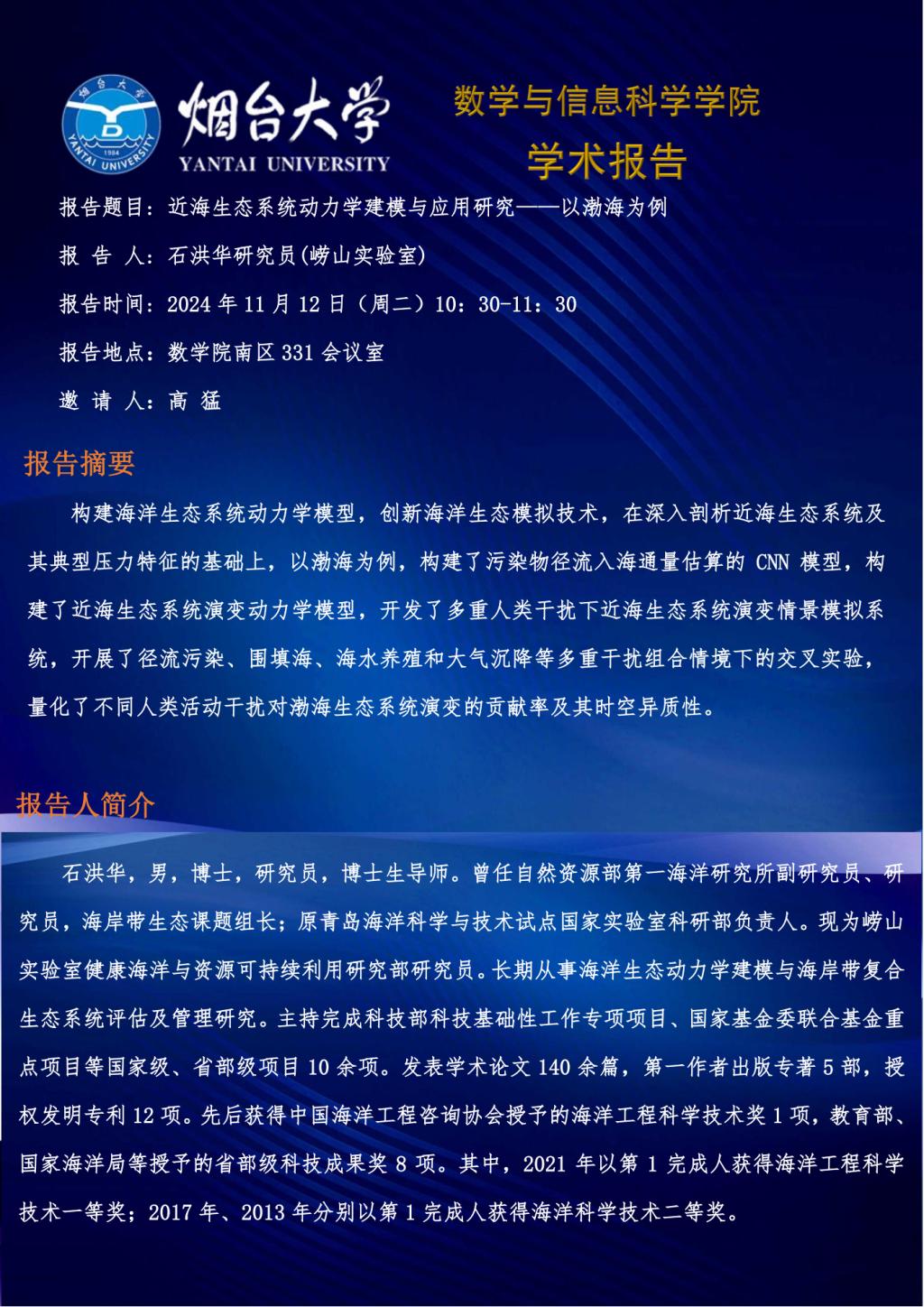 学术报告--石洪华 研究员(崂山实验室)—20241112