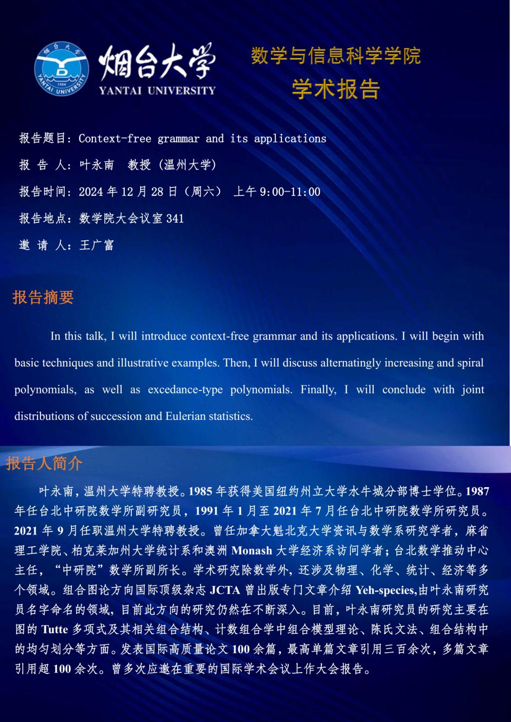 学术报告--王培合 教授(曲阜师范大学)—20241231