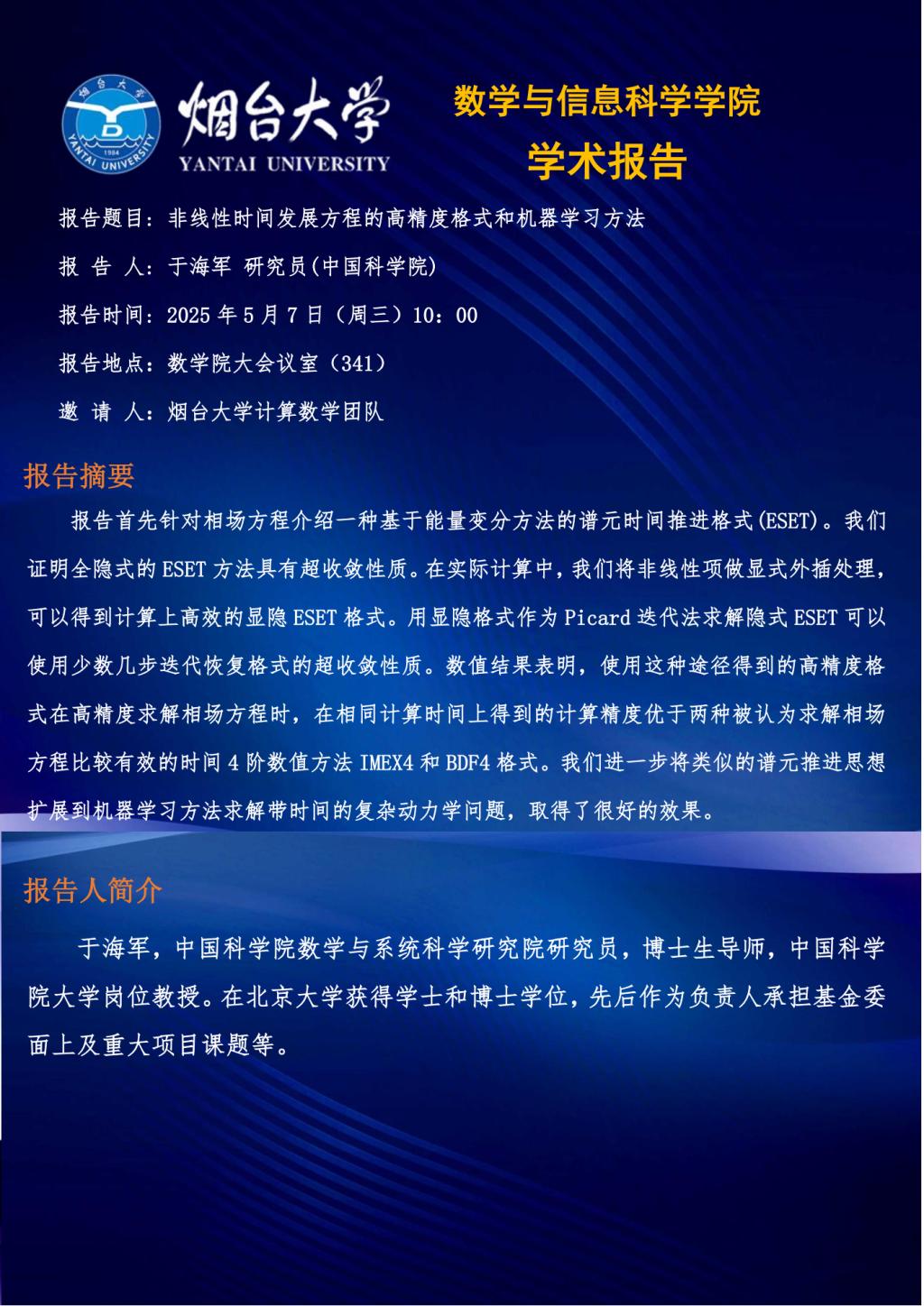 学术报告--于海军 研究员(中国科学院数学与系统科学研究院)—20250507