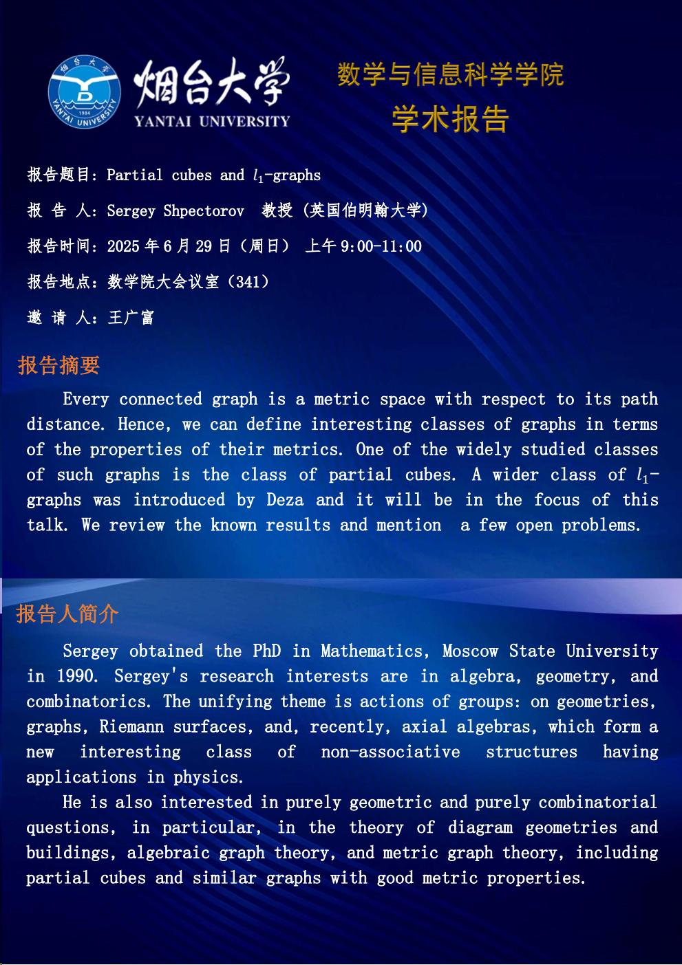 学术报告--Sergey Shpectorov 教授 (英国伯明翰大学)—20250629