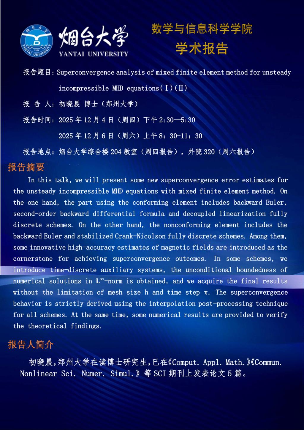 学术报告--初晓晨 博士(郑州大学)—20251204