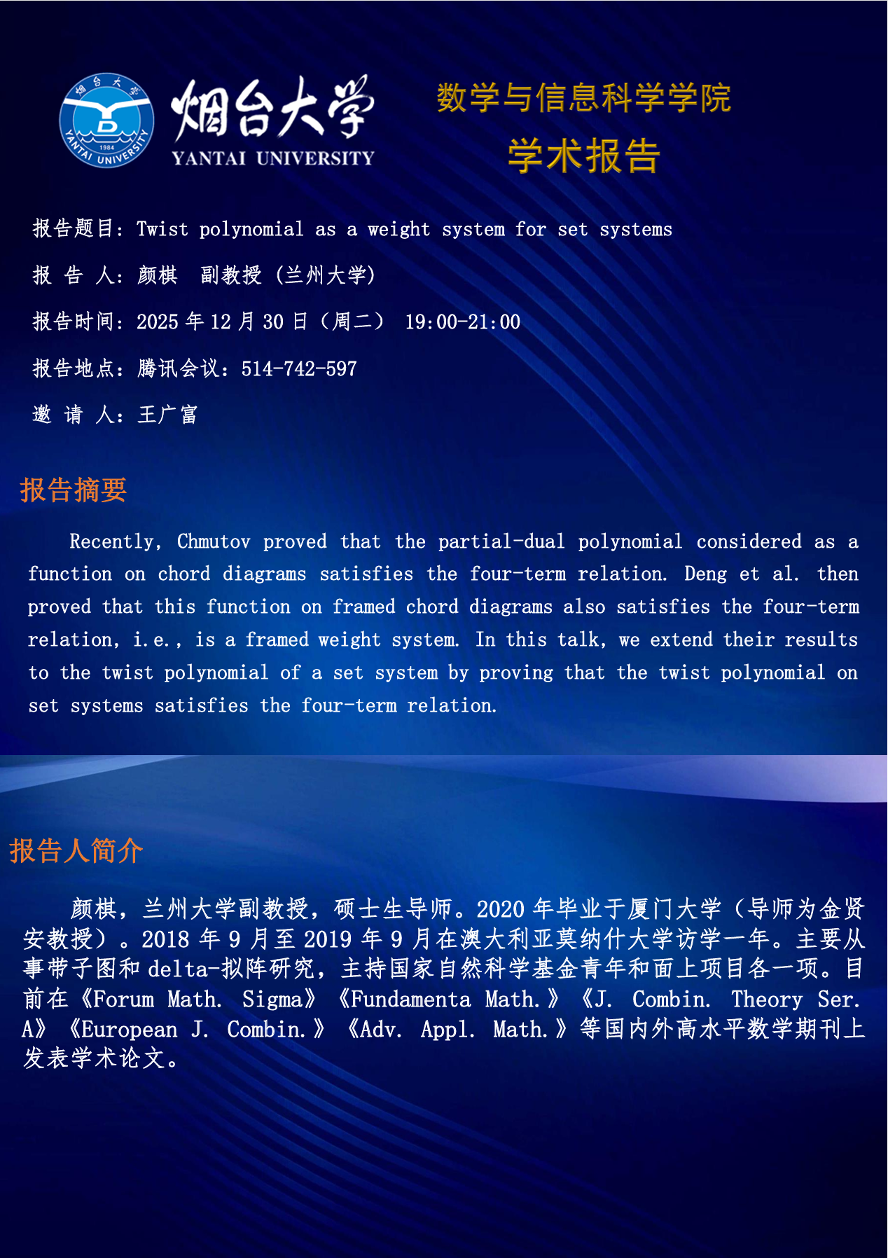 学术报告—颜棋 副教授(兰州大学)—20251230