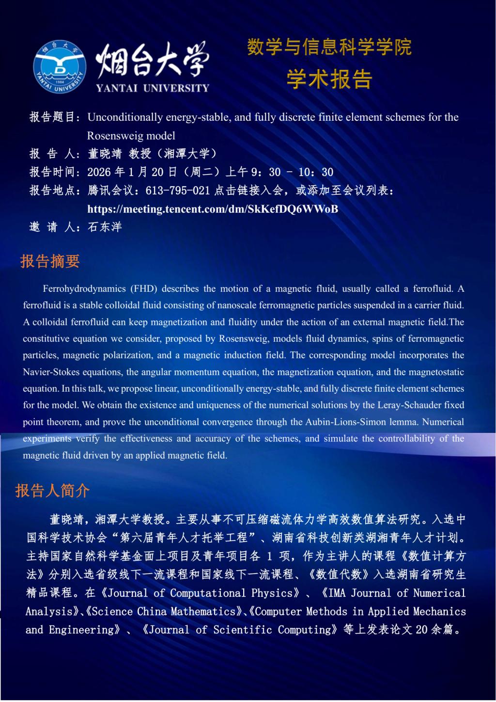 学术报告--董晓靖 教授(湘潭大学)—20260120