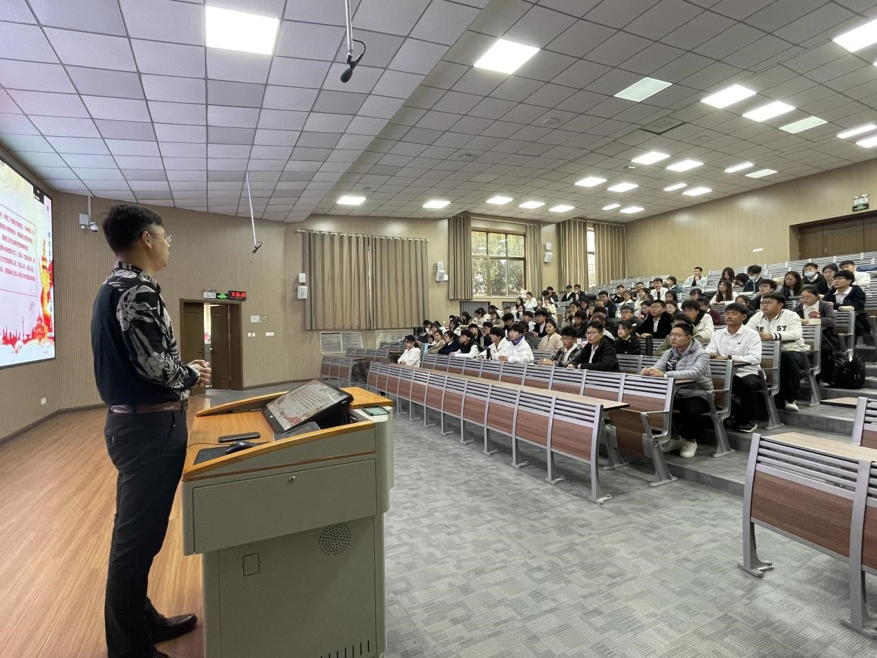 孙丰云以《全面准确学习领会 知行合一贯彻落实》为主题,紧紧围绕党的二十大提出的新观点、新思想、新论断,从党的二十大的主题、主要成果,过去5年的工作和新时代10年的伟大变革,马克思主义中国化时代化,中国式现代化,全面建设社会主义现代化国家的目标任务,坚持党的全面领导和全面从严治党,应对风险挑战,深入学习贯彻党的二十大精神,持续推进学院学生党建工作高质量发展等八个方面深入解读了党的二十大精神。