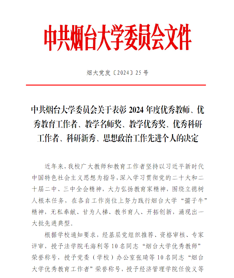 陈传军获“山东省教学名师”,郝雪梅获“香蕉视频