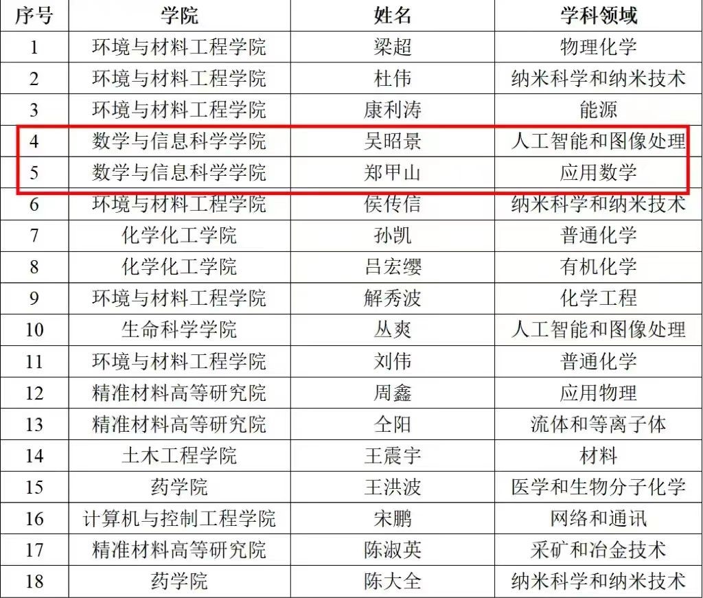 近日,美国斯坦福大学John P.A.Ioannidis教授团队与Elsevier旗下Mendeley Data发布2023年版“全球前2%顶尖科学家榜单”(World's Top 2% Scientists)。我院张志军教授和吴昭景教授入选“终身科学影响力排行榜”,吴昭景教授和郑甲山教授入选“年度科学影响力排行榜”。